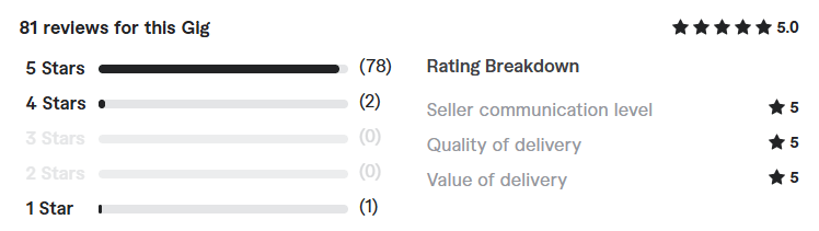- Trusted Level Two Freelancer: 70+ Positive reviews and proven delivery record on Fiverr